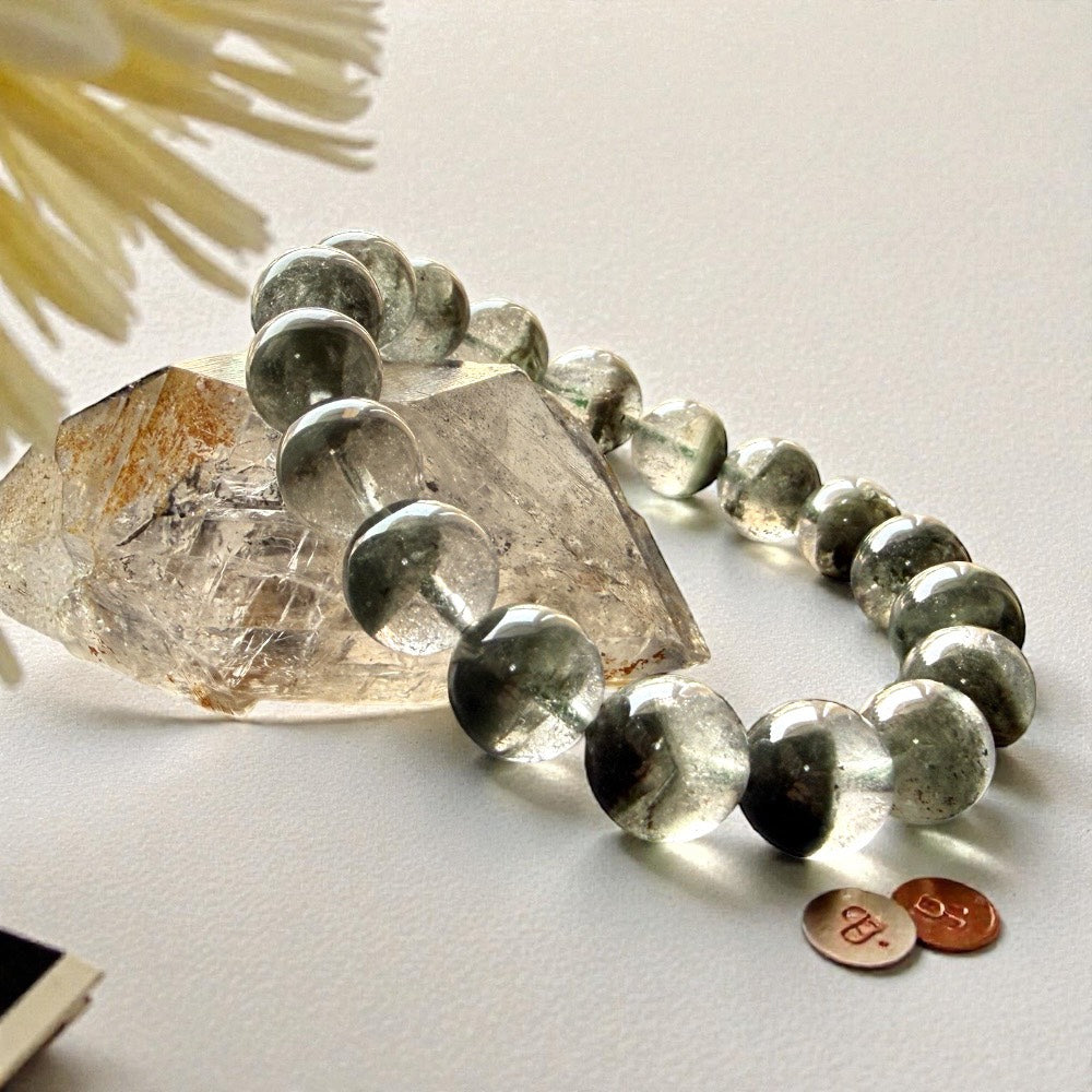 天然半盆綠幽靈共生紅幽靈水晶手環|木火相生招正財、助事業執行力,天然半盆聚財異象水晶