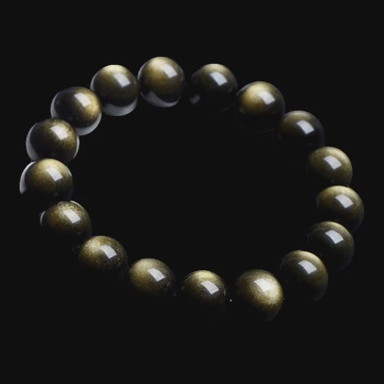 「金曜石(Golden Sheen Obsidian)」為火山熔岩迅速冷卻形成的天然黑曜石中,夾帶細緻金色絲光流動的稀有品種。
