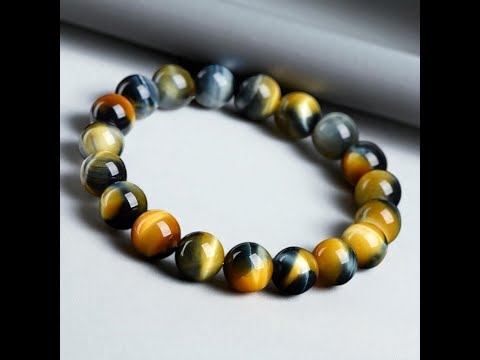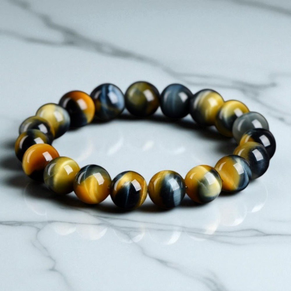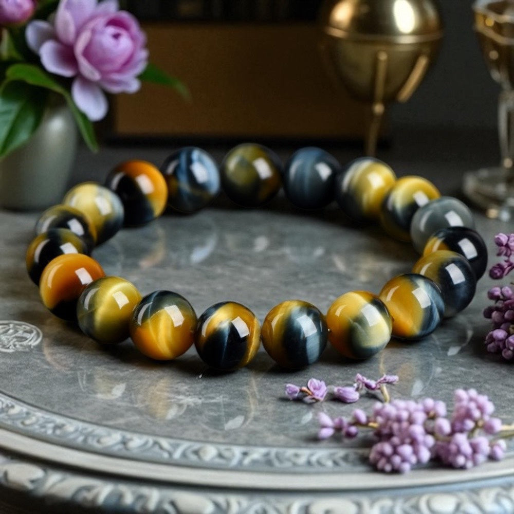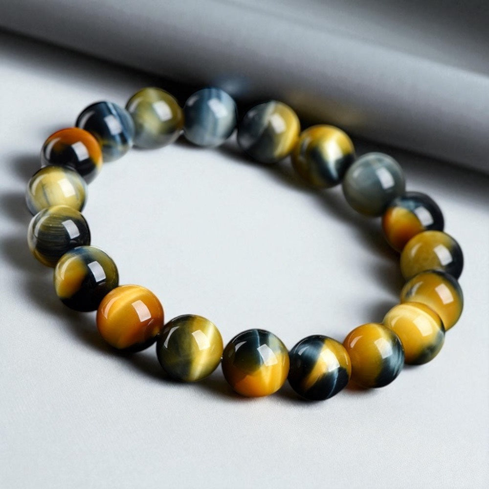 天然7A藍金黃夢幻虎眼石手環-三色平衡 氣場護盾 財富啟動 靈性洞察 王者之環 三曜之眼