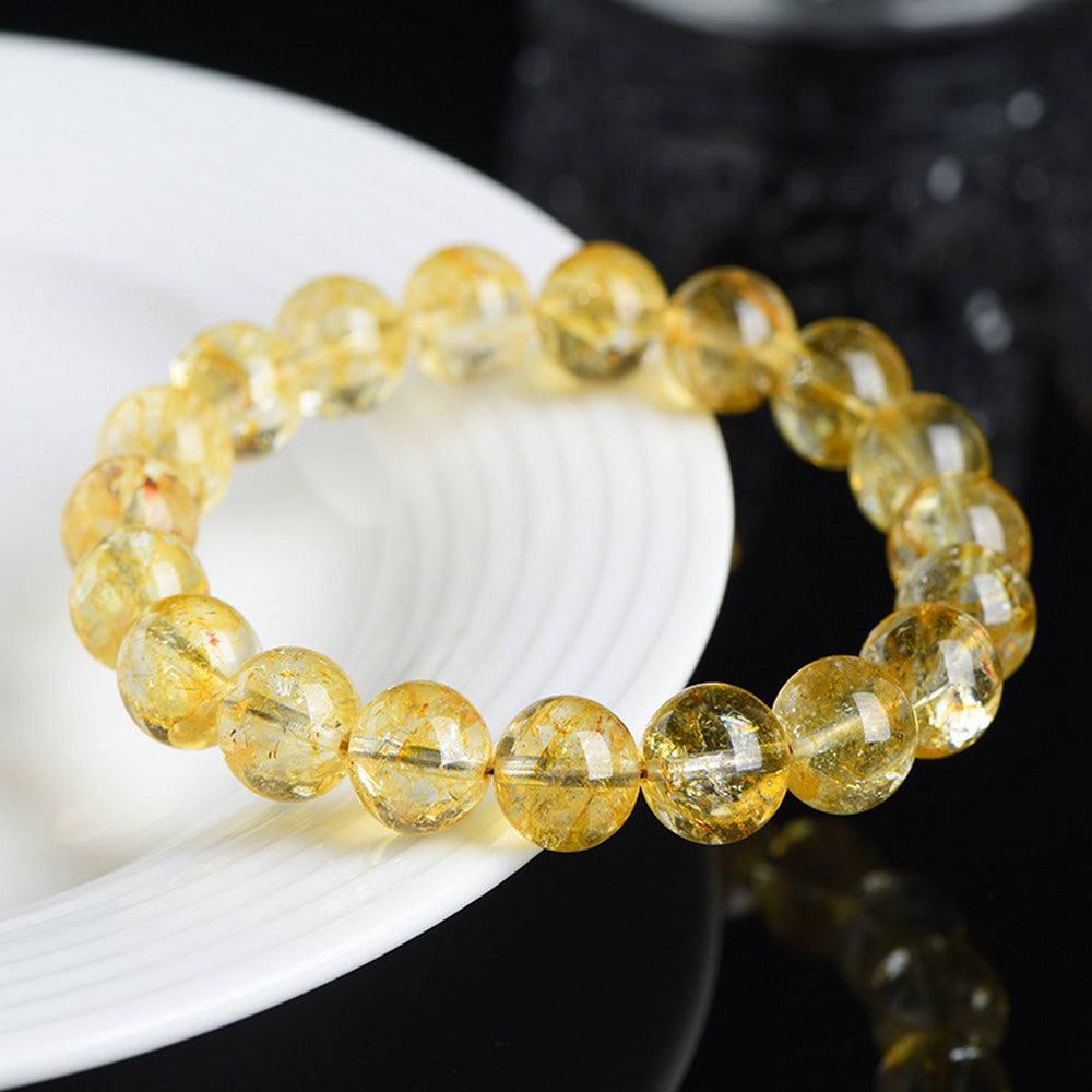 此條手鍊屬於 中顆粒、色澤明亮金黃接近「蜜糖金黃」、內含典型二相/三相包裹體屬於中高品質