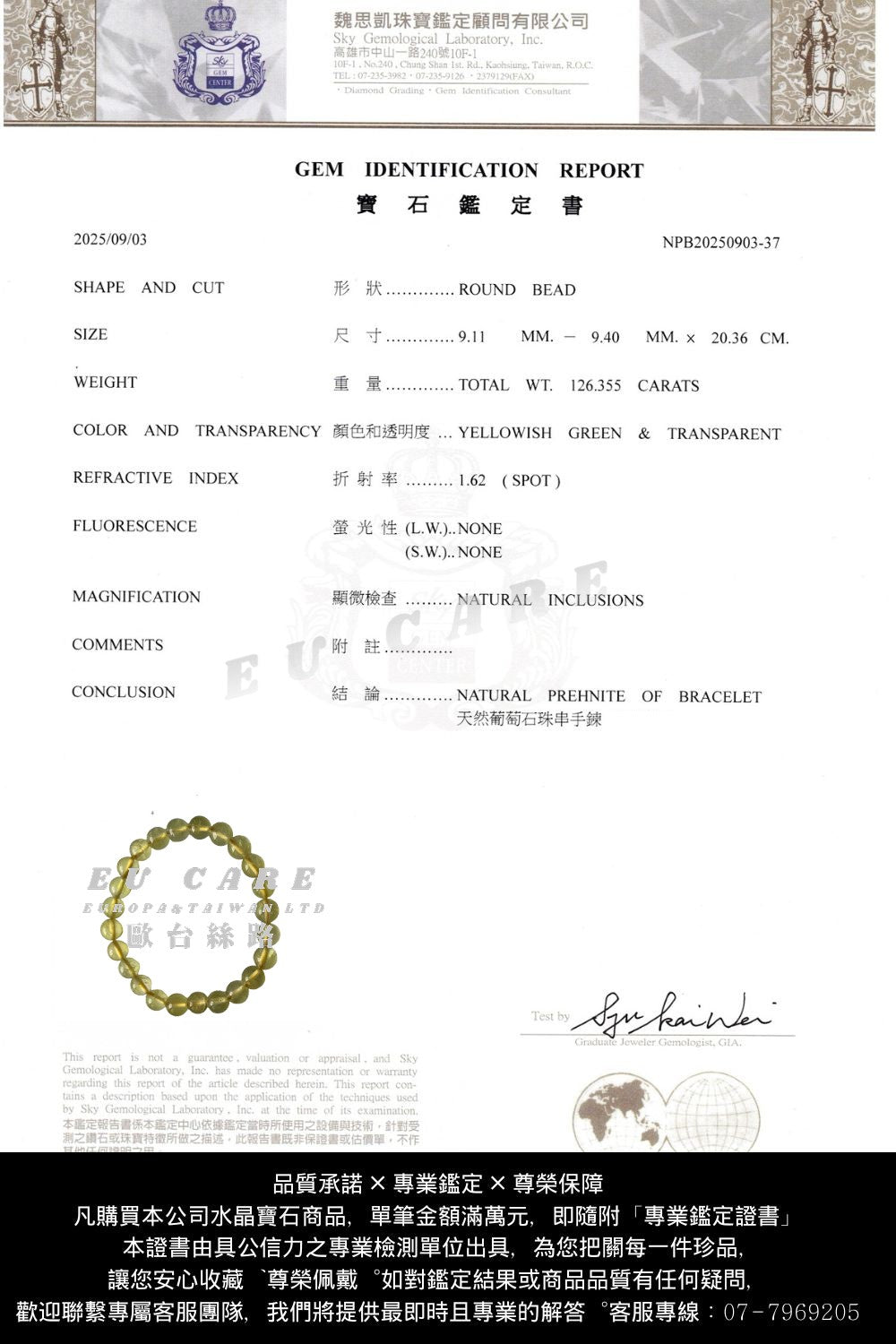 【EU CARE-歐台絲路】天然7A透體黃金葡萄石手環|預知直覺|守護療癒|安定心靈|吸引貴人|藏風聚氣