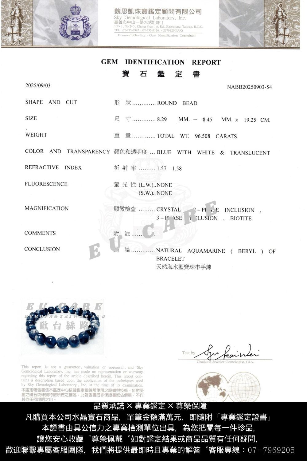 結論:天然海水藍寶 (綠柱石) 手鍊