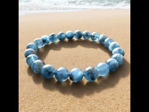 這條海水藍寶手鍊裡的 Biotite (黑雲母),其實是天然的「點綴內含物」,增加了手鍊的獨特性。