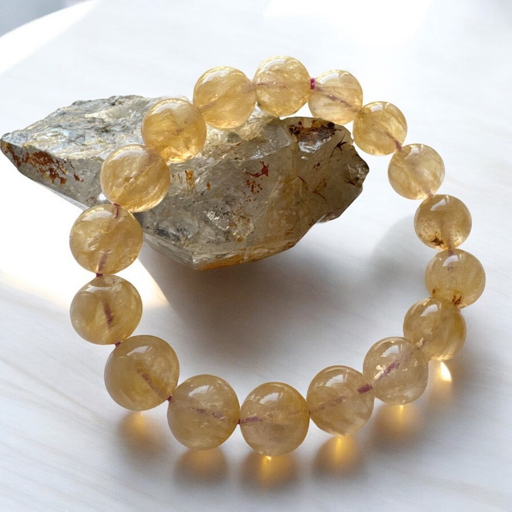 【EU CARE-歐台絲路】天然7A黃水晶羽毛鈦極光手環|高頻顯化 × 黃金願力 × 靈性通道啟動 × 能場提振 × 命運引導